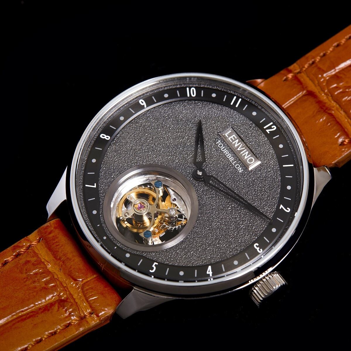 この時計を開発・製造しているのは「LENVINO」という香港の新鋭時計ブランドです。時計の専門家として香港の時計業界で25年以上働いてきた時計マニア達が「至上の時計」を製作するために2017年1月に立ち上げたブランド。今までにない斬新なデザインで最高品質の時計を手頃な価格で皆様のもとに届けたいという熱い想いをもっており今回紹介する「Tour 02」はその集大成ともいえる完成度です。